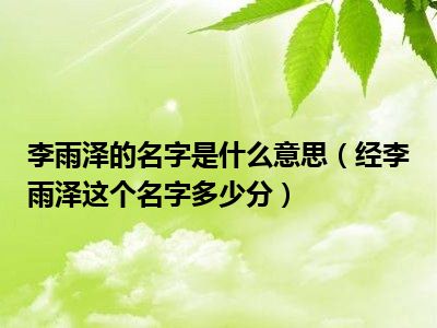 目前应该是有很多小伙伴对于经李雨泽这个名字多少分方面的信息比较感兴趣,现在小编就收集了一些与经李雨泽这个名字多少分相关的信息来分享给大家,感兴趣的小伙伴可以接着往下看,希望会帮助到你哦。