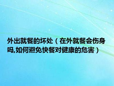 目前大家应该是对在外就餐会伤身吗,如何避免快餐对健康的危害比较感兴趣的,所以今天小编CC就来为大家整理了一些关于在外就餐会伤身吗,如何避免快餐对健康的危害方面的相关知识来分享给大家,希望大家会喜欢哦。
