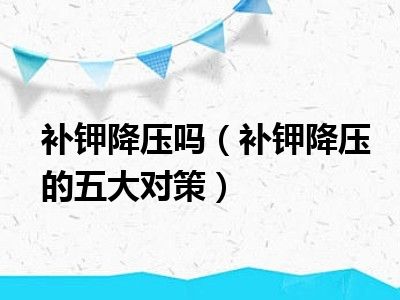 目前大家应该是对补钾降压的五大对策比较感兴趣的,所以今天小编CC就来为大家整理了一些关于补钾降压的五大对策方面的相关知识来分享给大家,希望大家会喜欢哦。