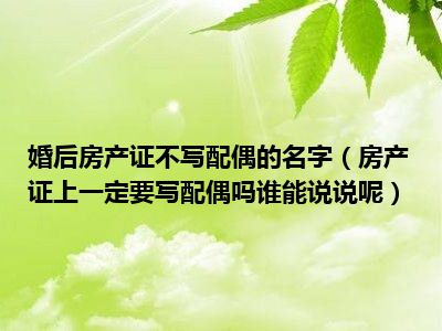 导读 目前大家应该是对房产证上一定要写配偶吗谁能说说呢比较感兴趣的,所以今天好房网小编CC就来为大家整理了一些关于房产证上一定要写配偶吗谁