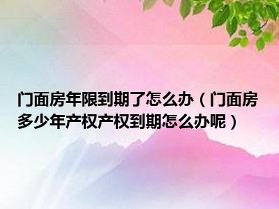 导读 目前大家应该是对门面房多少年产权产权到期怎么办呢比较感兴趣的,所以今天好房网小编CC就来为大家整理了一些关于门面房多少年产权产权到期