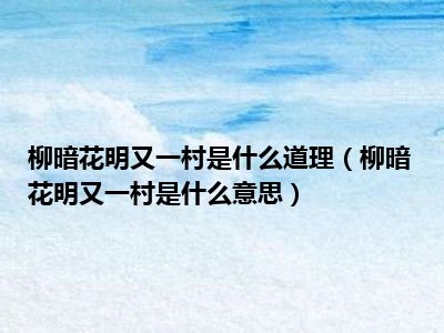 目前应该是有很多小伙伴对于柳暗花明又一村是什么意思方面的信息比较感兴趣,现在小编就收集了一些与柳暗花明又一村是什么意思相关的信息来分享给大家,感兴趣的小伙伴可以接着往下看,希望会帮助到你哦。