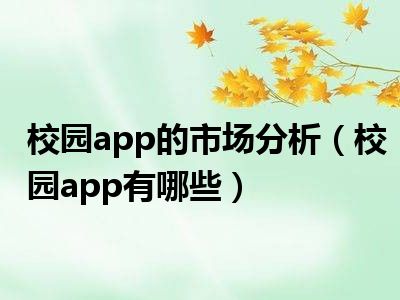 目前应该是有很多小伙伴对于校园app有哪些方面的信息比较感兴趣,现在小编就收集了一些与校园app有哪些相关的信息来分享给大家,感兴趣的