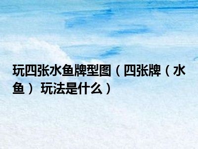 目前应该是有很多小伙伴对于四张牌(水鱼) 玩法是什么方面的信息比较感兴趣,现在小编就收集了一些与四张牌(水鱼) 玩法是什么相关的信息来分享给大家,感兴趣的小伙伴可以接着往下看,希望会帮助到你哦。