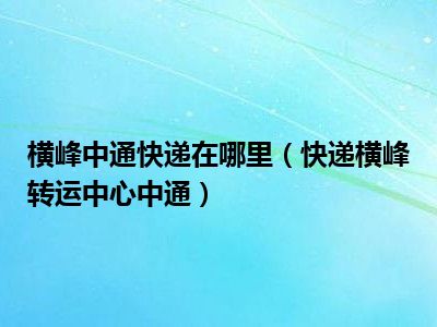 目前应该是有很多小伙伴对于快递横峰转运中心中通方面的信息比较感兴趣,现在小编就收集了一些与快递横峰转运中心中通相关的信息来分享给