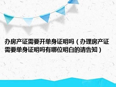 导读 目前大家应该是对办理房产证需要单身证明吗有哪位明白的请告知比较感兴趣的,所以今天好房网小编CC就来为大家整理了一些关于办理房产证需要