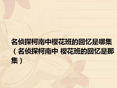 目前应该是有很多小伙伴对于名侦探柯南中 樱花班的回忆是那集方面的信息比较感兴趣,现在小编就收集了一些与名侦探柯南中 樱花班的回忆是那集相关的信息来分享给大家,感兴趣的小伙伴可以接着往下看,希望会帮助到你哦。