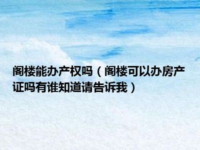 导读 目前大家应该是对阁楼可以办房产证吗有谁知道请告诉我比较感兴趣的,所以今天好房网小编CC就来为大家整理了一些关于阁楼可以办房产证吗有谁