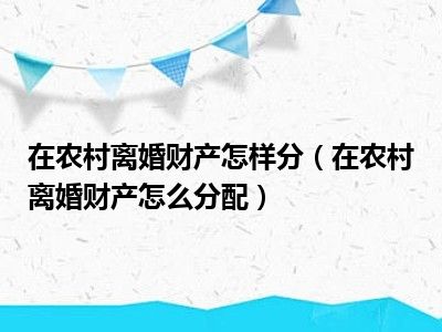 目前大家应该是对在农村离婚财产怎么分配比较感兴趣的,所以今天CC就来为大家整理了一些关于在农村离婚财产怎么分配方面的相关知识来分享给大家,希望大家会喜欢哦。