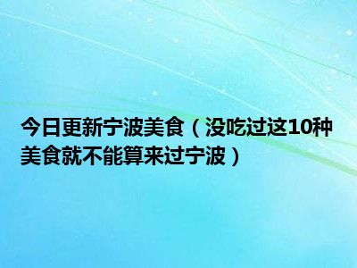 目前上述的内容应该能够为大家解答出大家对于宁波美食(没吃过这10种美食,就不能算来过宁波)的疑惑了,所以如果大家还想要了解更多的知识内容,也可以关注本站其他文章进行了解哦。