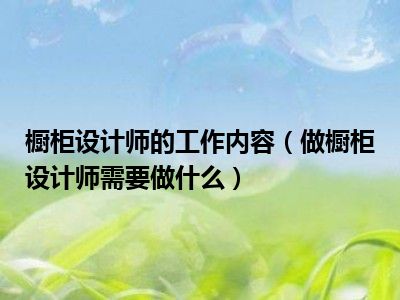 目前应该是有很多小伙伴对于做橱柜设计师需要做什么方面的信息比较感兴趣,现在小编就收集了一些与做橱柜设计师需要做什么相关的信息来分