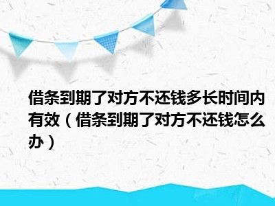 目前大家应该是对借条到期了对方不还钱怎么办比较感兴趣的,所以今天CC就来为大家整理了一些关于借条到期了对方不还钱怎么办方面的相关知识来分享给大家,希望大家会喜欢哦。