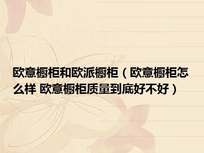 目前应该是有很多小伙伴对于欧意橱柜怎么样 欧意橱柜质量到底好不好方面的信息比较感兴趣,现在小编就收集了一些与欧意橱柜怎么样 欧意橱柜质量到底好不好相关的信息来分享给大家,感兴趣的小伙伴可以接着往下看,希望会帮助到你哦。