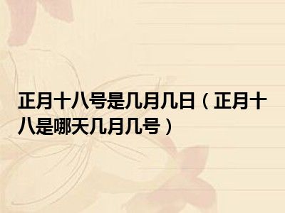 目前应该是有很多小伙伴对于正月十八是哪天几月几号方面的信息比较感兴趣,现在小编就收集了一些与正月十八是哪天几月几号相关的信息来分享给大家,感兴趣的小伙伴可以接着往下看,希望会帮助到你哦。