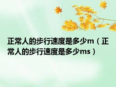 目前应该是有很多小伙伴对于正常人的步行速度是多少m/s方面的信息比较感兴趣,现在小编就收集了一些与正常人的步行速度是多少m/s相关的信息来分享给大家,感兴趣的小伙伴可以接着往下看,希望会帮助到你哦。