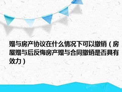 目前大家应该是对房屋赠与后反悔房产赠与合同撤销是否具有效力比较感兴趣的,所以今天CC就来为大家整理了一些关于房屋赠与后反悔房产赠与合同撤销是否具有效力方面的相关知识来分享给大家,希望大家会喜欢哦。