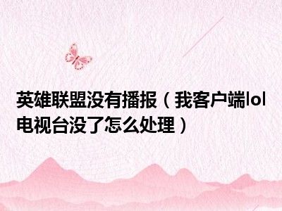 相信目前很多小伙伴对于我客户端lol电视台没了怎么处理都比较感兴趣,那么小编今天在网上也是收集了一些与我客户端lol电视台没了怎么处理