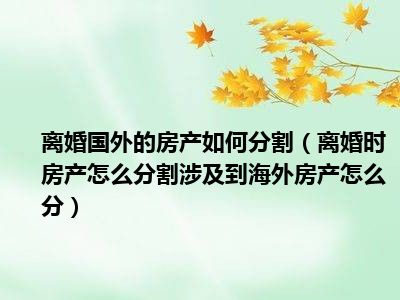 目前大家应该是对离婚时房产怎么分割,涉及到海外房产怎么分比较感兴趣的,所以今天CC就来为大家整理了一些关于离婚时房产怎么分割,涉及到海外房产怎么分方面的相关知识来分享给大家,希望大家会喜欢哦。