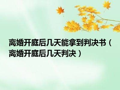 目前大家应该是对离婚开庭后几天判决比较感兴趣的,所以今天CC就来为大家整理了一些关于离婚开庭后几天判决方面的相关知识来分享给大家,希望大家会喜欢哦。