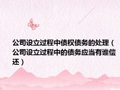 目前大家应该是对公司设立过程中的债务应当有谁偿还比较感兴趣的,所以今天CC就来为大家整理了一些关于公司设立过程中的债务应当有谁偿还方面的相关知识来分享给大家,希望大家会喜欢哦。