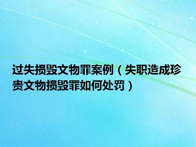 失职造成珍贵文物损毁罪的处罚:国家机关工作人员严重不负责任,造成珍贵文物损毁或者流失,后果严重的,处三年以下有期徒刑或者拘役。