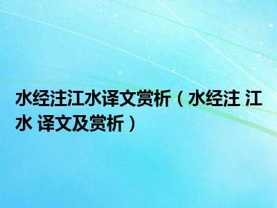 目前应该是有很多小伙伴对于水经注 江水 译文及赏析方面的信息比较感兴趣,现在小编就收集了一些与水经注 江水 译文及赏析相关的信息来分享给大家,感兴趣的小伙伴可以接着往下看,希望会帮助到你哦。