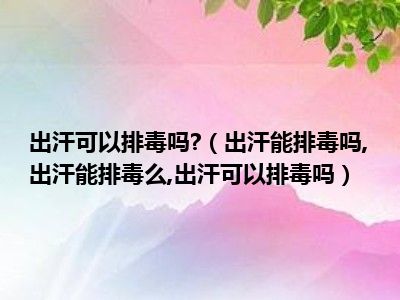 目前大家应该是对出汗能排毒吗,出汗能排毒么,出汗可以排毒吗比较感兴趣的,所以今天小编CC就来为大家整理了一些关于出汗能排毒吗,出汗能排毒么,出汗可以排毒吗方面的相关知识来分享给大家,希望大家会喜欢哦。