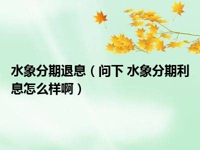 目前应该是有很多小伙伴对于问下 水象分期利息怎么样啊方面的信息比较感兴趣,现在小编就收集了一些与问下 水象分期利息怎么样啊相关的
