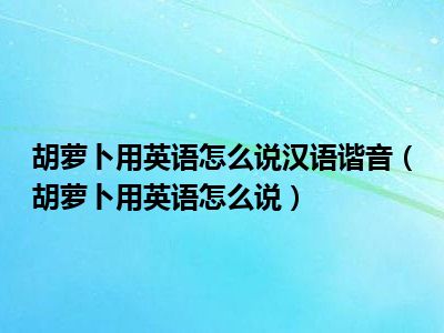 目前应该是有很多小伙伴对于胡萝卜用英语怎么说方面的信息比较感兴趣,现在小编就收集了一些与胡萝卜用英语怎么说相关的信息来分享给大家,感兴趣的小伙伴可以接着往下看,希望会帮助到你哦。