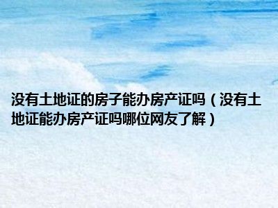 导读 目前大家应该是对没有土地证能办房产证吗哪位网友了解比较感兴趣的,所以今天好房网小编CC就来为大家整理了一些关于没有土地证能办房产证吗