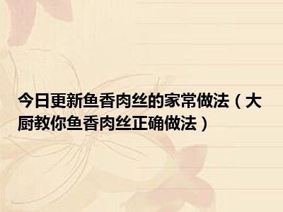 目前上述的内容应该能够为大家解答出大家对于鱼香肉丝的家常做法(大厨教你鱼香肉丝正确做法)的疑惑了,所以如果大家还想要了解更多的知识内容,也可以关注本站其他文章进行了解哦。