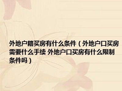 导读 目前大家应该是对外地户口买房需要什么手续 外地户口买房有什么限制条件吗比较感兴趣的,所以今天好房网小编CC就来为大家整理了一些关于外