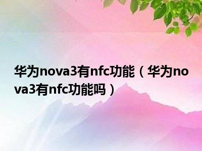 导读 1、华为nova3有nfc功能吗2、华为nova3没有nfc功能。3、华为nova 3安装了EMUI 8 2,为用户带来更智能的生活体验。可以自动识别图片中