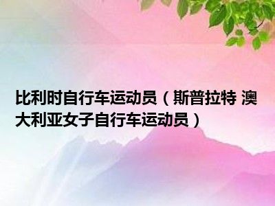 导读 目前是有很多朋友们对于斯普拉特 澳大利亚女子自行车运动员这个信息比较感兴趣,那么小编也是收集了一些斯普拉特 澳大利亚女子自行车运动