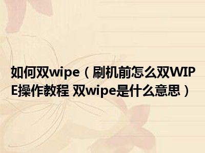 导读 相信目前很多小伙伴对于刷机前怎么双WIPE操作教程 双wipe是什么意思都比较感兴趣,那么小编今天在网上也是收集了一些与刷机前怎么双WIPE...
