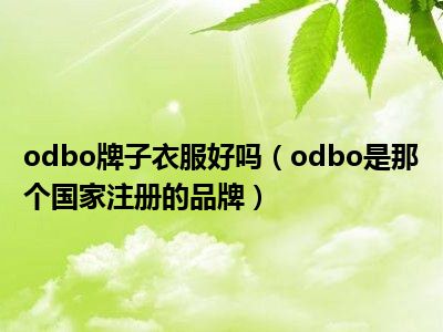目前应该是有很多小伙伴对于odbo是那个国家注册的品牌方面的信息比较感兴趣,现在小编就收集了一些与odbo是那个国家注册的品牌相关的信息来分享给大家,感兴趣的小伙伴可以接着往下看,希望会帮助到你哦。