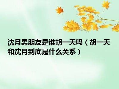 目前应该是有很多小伙伴对于胡一天和沈月到底是什么关系方面的信息比较感兴趣,现在小编就收集了一些与胡一天和沈月到底是什么关系相关的信息来分享给大家,感兴趣的小伙伴可以接着往下看,希望会帮助到你哦。