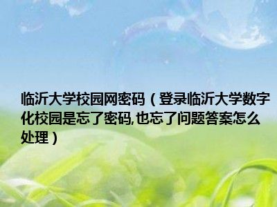 相信目前很多小伙伴对于登录临沂大学数字化校园是忘了密码,也忘了问题答案怎么处理都比较感兴趣,那么小编今天在网上也是收集了一些与登录临沂大学数字化校园是忘了密码,也忘了问题答案怎么处理相关的信息来分享给大家,希望能够帮助到大家哦。