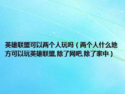 相信目前很多小伙伴对于两个人什么地方可以玩英雄联盟,除了网吧,除了家中都比较感兴趣,那么小编今天在网上也是收集了一些与两个人什么地