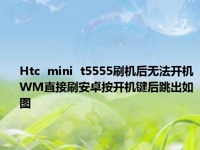 相信目前很多小伙伴对于htc hd mini t5555刷机后开不了机 是WM直刷android 按开机键后跳出来如图都比较感兴趣,那么小编今天在网上也是收集了一些与htc hd mini t5555刷机后开不了机 是WM直刷android 按开机键后跳出来如图相关的信息来分享给大家,希望能够帮助到大家哦。