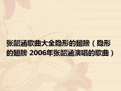 导读 目前是有很多朋友们对于隐形的翅膀 2006年张韶涵演唱的歌曲这个信息比较感兴趣,那么小编也是收集了一些隐形的翅膀 2006年张韶涵演唱的歌