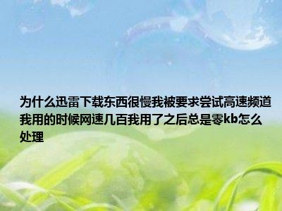 相信目前很多小伙伴对于为什么迅雷下载东西特别慢,叫我试用高速通道,使用的时候网速好几百,使用完以后,就一直是零kb,怎么处理都比较感兴趣,那么小编今天在网上也是收集了一些与为什么迅雷下载东西特别慢,叫我试用高速通道,使用的时候网速好几百,使用完以后,就一直是零kb,怎么处理相关的信息来分享给大家,希望能够帮助到大家哦。
