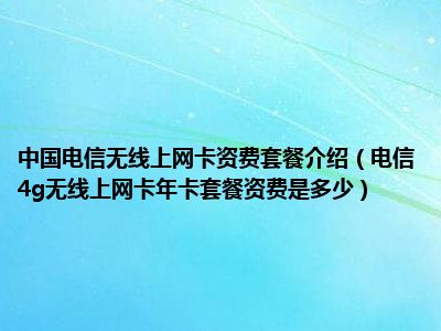 相信目前很多小伙伴对于电信4g无线上网卡年卡套餐资费是多少都比较感兴趣,那么小编今天在网上也是收集了一些与电信4g无线上网卡年卡套餐