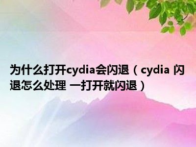 相信目前很多小伙伴对于cydia 闪退怎么处理 一打开就闪退都比较感兴趣,那么小编今天在网上也是收集了一些与cydia 闪退怎么处理 一打开就闪退相关的信息来分享给大家,希望能够帮助到大家哦。
