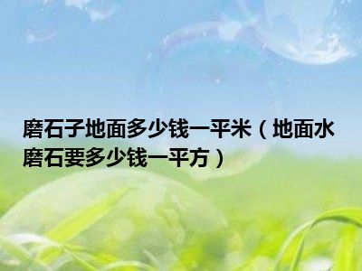 目前应该是有很多小伙伴对于地面水磨石要多少钱一平方方面的信息比较感兴趣,现在小编就收集了一些与地面水磨石要多少钱一平方相关的信息来分享给大家,感兴趣的小伙伴可以接着往下看,希望会帮助到你哦。