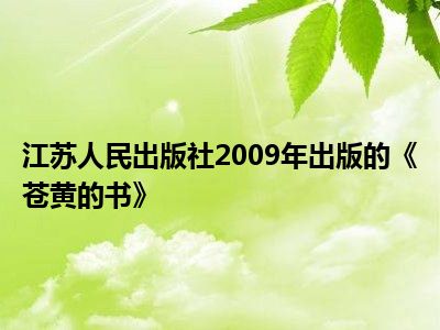 导读 目前是有很多朋友们对于苍黄 2009年江苏人民出版社出版的图书这个信息比较感兴趣,那么小编也是收集了一些苍黄 2009年江苏人民出版社出版
