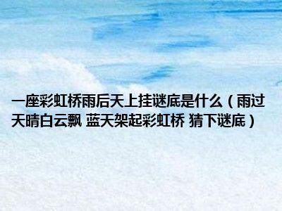 目前应该是有很多小伙伴对于雨过天晴白云飘 蓝天架起彩虹桥 猜下谜底方面的信息比较感兴趣,现在小编就收集了一些与雨过天晴白云飘 蓝