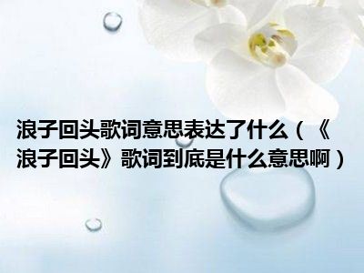 目前应该是有很多小伙伴对于《浪子回头》歌词到底是什么意思啊方面的信息比较感兴趣,现在小编就收集了一些与《浪子回头》歌词到底是什么意思啊相关的信息来分享给大家,感兴趣的小伙伴可以接着往下看,希望会帮助到你哦。