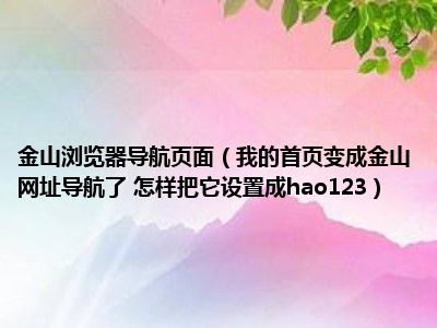 相信目前很多小伙伴对于我的首页变成金山网址导航了 怎样把它设置成hao123都比较感兴趣,那么小编今天在网上也是收集了一些与我的首页变成金山网址导航了 怎样把它设置成hao123相关的信息来分享给大家,希望能够帮助到大家哦。