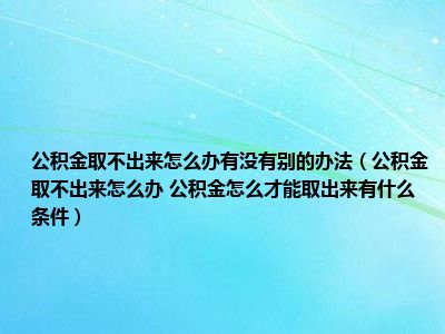 导读 目前大家应该是对公积金取不出来怎么办 公积金怎么才能取出来有什么条件比较感兴趣的,所以今天好房网小编CC就来为大家整理了一些关于公积